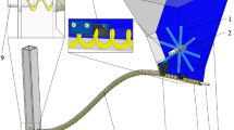 The design of the spiral outer grooved wheel presented in this paper is depicted in Fig. 2. By varying the number of grooves (n), the groove depth (b), and the groove radius (r), the volume of a single groove can be altered. Additionally, the uniformity of the seed metering device is influenced by adjustments to the lead angle of the chute and the rotation speed of the grooved wheel. The designed groove radius (r) is set at 30 mm, while other parameters are primarily determined by the number of grooves (n). Four size parameters are detailed in Table 1. Due to the interaction force between the tooth groove surface and the inner tooth-shaped retaining ring, an excessively large lead angle of the outer grooved wheel can lead to increased force and potential damage to the component. In this study, the lead angle of the groove wheel is varied from 0 to 15°, specifically at 0°, 5°, 10°, and 15°. The suitable rotation speed range of the grooved wheel during wheat sowing is found to be n = 9–60 r/min22, with specific speeds of 30 r/min, 40 r/min, and 50 r/min discussed in this paper. The working length (L) is taken to be 30 mm.
