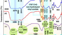 Fourier Transform Infrared (FTIR) spectroscopy was employed to identify the major functional groups and to investigate potential molecular interactions between PEO and GO in the prepared nanocomposite films. The FTIR spectra ranging from 3000 cm−1 to 400 cm⁻¹ were recorded and presented in Fig. 3. For pristine PEO, two prominent absorption bands were observed at 1107.4 cm⁻¹ and 2870.32 cm⁻¹. The band at 1107.4 cm⁻¹ corresponded to the C–O–C stretching vibration, characteristic of the ether linkages in the semi-crystalline PEO backbone29,30. The absorption peak at 2870.32 cm⁻¹ is probably due to the asymmetric stretching vibration of CH₂ groups, typically associated with the aliphatic segments of PEO chains29. The FTIR spectrum of synthesized GO displays a strong absorption band at 1725.9 cm⁻¹, corresponding to the stretching vibration of carbonyl (C = O) groups, and another distinctive band at 1051.8 cm⁻¹, assigned to the stretching of C–O bonds, likely from epoxy or alkoxy functionalities. These bands confirmed the presence of oxygen-containing groups introduced during the oxidation of graphite, as expected from the Hummers’ method31,32. The FTIR spectra of the PEO/GO nanocomposite films (HPEOGO1, HPEOGO3, HPEOGO5, and HPEOGO7) exhibited all the main bands associated with pristine PEO, indicating that the primary chemical structure of the polymer is preserved in the presence of GO (Fig. 1). However, two notable spectral changes were observed. First, the intensity of the C–H asymmetric stretching band at 2870.32 cm⁻¹ showed a gradual decrease with increasing GO content. This attenuation may suggest a partial restriction in the vibrational freedom of CH₂ groups due to interactions between the GO nanosheets and the PEO matrix33,34. Second, the intensity of the C–O–C stretching band at 1107.4 cm⁻¹ increased upon GO incorporation (Fig. 2). This enhancement can be interpreted as evidence of intermolecular interactions and a potential increase in local ordering or alignment of PEO chains in the presence of GO, which may also be associated with modifications in the polymer’s crystallinity32. No new bands were introduced in the FTIR spectra of the composite films, suggesting that the interaction between GO and PEO is primarily physical rather than chemical. The observed spectral changes corroborate the successful formation of the nanocomposite structure through non-covalent interactions, such as Van der Waals forces or possible hydrogen bonding, without altering the fundamental chemical architecture of the polymer matrix34. Finally, the FTIR analysis confirmed the incorporation of GO into the PEO matrix and revealed subtle yet significant molecular interactions that influence the polymer’s vibrational characteristics and structural organization.