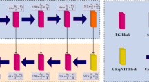 As shown in Fig. 4, where the input features are represented as the feature \(T_i\) extracted from the global context branch and the feature \(C_i\) extracted from the local details branch. Firstly, the Hadamard product is used to interact \(T_i\) and \(C_i\) with fine-grained information, and then the feature information is further extracted and integrated by convolutional operation to obtain the preliminary fused feature map \(B_i\). Meanwhile, the scSE module35 is introduced to enhance the feature representation. After \(T_i\) and \(C_i\) are processed by the scSE module, two enhanced feature maps are obtained. Finally, the enhanced feature maps from the global context branch, the enhanced feature maps from the local details branch, and the fused feature map Bi are concatenated along the channel direction. The feature map \(F_i\) with rich information is output by the residual block. The specific fusion strategy is shown as follows: