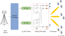 The hybridized precoding is indicated by \(T_{F}\), which is generated in the mmWave system for estimating the vector channel. The uplink channel present in it assists in attaining the downlink channel through the estimation of vector channels in the channel dataset. Here, the developed model is employed to acquire downlink precoding. In terms of the uplink channel, the BS requires more power, and the sequenced orthogonal pilots \(Z = D^{S \times S}\) have been shifted via different signals along with the users \(H\). There are totally \(H\) analogue precoding vectors \(T_{F}^{q} \in D^{{R_{c} \times U_{T} }}\) and digitalized precoding vectors \(T_{C}^{q} \in D^{{U_{T} \times U_{T} }}\) are present in the uplink channel, wherein the term \(q\) lies in \(1,2,..Q\) . The BS received the sequenced pilots in \(Q^{th}\) sender, as per Eq. (4).