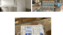 This section addresses the influence of elevated temperatures and cooling methods (furnace and water cooling) at 200, 400, and 600 °C, alongside varying soaking durations of 10, 20, and 30 min, on the risk of explosive spalling in C0 and C50 specimens. Explosive spalling refers to the sudden and forceful detachment of surface layers from heated concrete when subjected to high thermal stresses15. The findings revealed that C0 specimens withstood explosive spalling up to 400 °C for a heating duration of 30 min under furnace cooling. Nevertheless, when exposed to 400 °C for 27–30 min (surface = 400 °C, core ≈ 219 °C), approximately 10% of the furnace-heated specimens exhibited explosive spalling during heating, as depicted in Fig. 4a. Spalling led to fragmentation of the specimens into pieces measuring 2–6.5 cm in length and 1.5–5 cm in thickness, with only about 35% of the original volume preserved. This behavior is primarily attributed to the dense microstructure, which hinders the dissipation of internal pressure generated by the evaporation of both physically and chemically bound water. Moreover, a substantial thermal gradient of 181.3 °C between the surface and the core introduced significant thermal stresses. The combination of internal vapor pressure and these stresses triggered explosive failure in the specimens. In the case of water cooling, no spalling was observed in C0 specimens at 200 °C across all soaking durations. However, all specimens heated to 400 °C for 10, 20, or 30 min (surface = 400 °C, core = 148.75 °C for the 10-minute case) and subsequently quenched in water experienced quench-induced explosive spalling during cooling. The fragmentation resulting from the spalling event produced debris measuring 1–3.5 cm in length and 0.5–2.5 cm in thickness, leaving approximately 70% of the original specimen volume intact, as illustrated in Fig. 4b. This phenomenon is likely due to thermal shock induced by the sudden cooling, which generated additional thermal stresses surpassing the mortar’s tensile strength, in conjunction with vapor pressure buildup. Consequently, results under water cooling at 400 °C could not be obtained. Similarly, results at 600 °C were not recorded since all specimens spalled explosively during heating before reaching the target temperature.