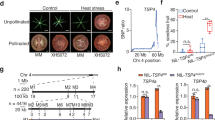 The pollen tube growth was investigated in vivo. Temperatures above 30°C impair tomato pollen germination and pollen tube growth21. Pollen tube germination was observed 24 h after hand-pollination of the stigma at 25 °C. Although all pollen showed high viability under stress, the pollen tubes from the control and ethanol-treated plants did not grow, whereas only pollen from the 4-CPA-treated plants grew under HS (Supplementary Fig. S4b), indicating that 4-CPA application promoted pollen tube growth under HS.