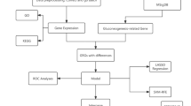 The GeneCards database35 (https://www.genecards.org/) and Molecular Signatures Database (MSigDB)36 (https://www.gsea-msigdb.org/gsea/msigdb) serves as the primary sources for identifying GRGs. Genes were retrieved from the GeneCards database using “glycolysis” as the search keyword. Filtering criteria were applied to retain only genes designated as “Protein Coding” and with a “Relevance Score > 1”. The Relevance Score quantitatively assesses the association between each gene and the search keyword by integrating evidence from literature, functional annotations, and biological pathways. Setting the threshold > 1 significantly enhances the selection of genes biologically relevant to glycolysis, minimizes the inclusion of low-relevance genes, and thereby increases the scientific rigor and specificity of subsequent enrichment analyses. This established filtering approach has been utilized in previous studies, supporting its validity and applicability. Ultimately, a total of 1,561 GRGs were procured from GeneCards. Similarly, using “glycolysis” as the keyword to search the MSigDB database, we incorporated all relevant authoritative gene sets directly associated with glycolysis, including BIOCARTA_GLYCOLYSIS_PATHWAY, KEGG_GLYCOLYSIS_GLUCONEO GENESIS, REACTOME_GLYCOLYSIS, HALLMMAPK CLYCOLYSUS, REACTOME_REGULATION_OF_GLYCOLYSIS_BY_FRUCTOSE_2_6_BISPHOSPHATE_METABOLISM, WP_AEROBIC_GLYCOLYSIS, WP_AEROBIC_GLYCOLYSIS_AUGMENTED, HALLMARK_GLYCOLYSIS, WP_GLYCOLYSIS_AND_GLUCONEO GENESIS, and WP_GLYCOLYSIS_IN_SENESCENCEWP_HIF1A_AND_PPARG_REGULATION_OF_GLYCOLYSIS. This search yielded an aggregate of 305 GRGs. The GRG sets obtained from both databases were then consolidated, and duplicate entries were removed. A comprehensive analysis led to the identification of 1,711 unique GRGs for subsequent downstream analysis. Comprehensive data is depicted in Supplementary Table S6 online.