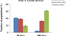 A: Neutralizing antibody (NAb) activity. Units: % Neutralization