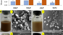 The viscosity (in triplicate) was determined using a rheometer (MCR 72, Anton Paar, Germany) with parallel plate geometry (50 mm diameter) having a Peltier system-controlled temperature of 25 °C and a gap of 0.2 mm at a 0.1–100 s −1 forced shear rate. 1 mL sample was injected into the emulsion rheometer, and the emulsions’ consistency (K, Pa.sn) and flow behaviour indices (η) were determined using a power-law model. The power-law model parameters were used to fit the obtained data using the following formula: σ = Kγn, where σ is the shear stress (Pa), K is the consistency coefficient (Pa.s), γ is the shear rate (s − 1), and n is the power-law exponent.