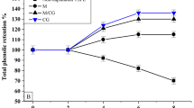 Figure 5 represents the oxidative stability of microencapsulated oil vis-a-vis control. The observed IP value of neat flaxseed oil is 1.4 h, which is comparable to the value reported for sunflower oil (1.3 h) and linseed oil (2.04 h) under similar conditions40. The typical induction period of 0.25–2.0 h has been reported for various polyunsaturated oils as per the Application Bulletin on evaluating their oxidative stability by the Rancimat method. The conductivity curves of the selected microencapsulated samples clearly show the protective effect of different wall materials on the oxidative stability of oils, as higher IP values were recorded for all samples. A maximum IP value of 11.8 h was observed for sample P11 containing WPC: MD: GA when present in a ratio of 1.5:0.5:0.2, contributing to 8.42 times better stability than bulk oil. This highly protective effect can be explained by the WPC’s antioxidant activity (due to lactoferrin), which protects the labile components in dispersed systems39.