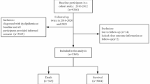 To evaluate effect modification by important demographic or clinical characteristics, exploratory subgroup analyses were performed considering the following variables: age (< 65, ≥ 65 years), sex (females, males), BMI (< 30, ≥ 30 kg/m2), hypertension (y/n), diabetes mellitus (y/n), hyperlipidemia (y/n), statin therapy (y/n). Interactions were detected on the multiplicative scale by introducing the product term of both variables into the model. Kaplan–Meier curves, restricted cubic splines regression models, and subgroup analyses were adjusted for the same covariates as in Model 3. All statistical analyses were performed using R software (version 4.2.1). Key R packages included: survey (v4.4-2), gtsummary (v2.0.4), survival (v3.8-3), survminer (v0.5.0), rms (v7.0-0), epitools (v0.5-10.1), and Hmisc (v5.2-2). Statistical significance was defined as a two-sided p < 0.05. All analyses accounted for NHANES’s complex multistage sampling design by applying sampling weights (1/5 * WTDR4YR for 1999–2002 or 1/10 * WTDRD1 for 2003–2018) to ensure national representativeness and incorporating clustering variables (SDMVPSU for primary sampling units) and stratification variables (SDMVSTRA)34.