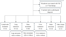 In this retrospective multi-institutional study, patients with aRCC who were treated with ICI combination therapies at 12 Japanese institutions between August 2018 and November 2023 were registered. We defined aRCC as simultaneous metastasis at the time of RCC diagnosis, recurrence after surgery, or locally advanced cancer that was unresectable for curative purposes. The enrolled patients were stratified into favorable, intermediate, or poor risk groups, according to the International Metastatic RCC Database Consortium (IMDC) risk classification26 The following clinicopathological data were collected: age, sex, IMDC risk classification, histological type of the primary tumor, surgical history, therapeutic regimen of ICI combination therapy, and metastatic sites. For patients who did not undergo nephrectomy, the pathological diagnosis was primarily confirmed by image-guided needle biopsy. The decision to perform nephrectomy and its timing were determined at each institution based on the patient’s performance status, the location and number of metastases, and other clinical factors.