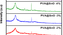 Figure 2B illustrates the XRD patterns of pure PVA and ZTO/PVA nanocomposite films with increasing ZTO loading (samples S1, S2, and S3). Pure PVA shows a broad, low-intensity diffraction halo centered around 19.5°, characteristic of its semi-crystalline nature21. Upon incorporation of ZTO-NPs, the diffraction peaks become sharper and more intense, particularly at higher nanoparticle content. These peaks are superimposed on the amorphous PVA background and correspond to the characteristic ZTO crystalline planes, confirming successful nanofiller dispersion and strong structural interaction between the components.