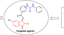 Indolin-2-one is a heterocyclic motif that has progressively gained interest in the last decades due to the biological properties associated with the developed new analogs27. Sunitinib (Sutent) 8 is an analog that has famously gained FDA approval for clinical use against gastrointestinal stromal, advanced renal cell (2006), pancreatic (2011), and recurrent renal cell (2017) cancers with a multi-targeted tyrosine kinase (VEGFR-1,-2, -3; PDGFR-α, -β; and c-kit) inhibitory effect19,20,28 (Fig. 1).