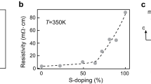 Figure 1 shows the T-dependent behavior of the monoclinic order parameter \(\beta\) for (a) Ta\(_\textrm{2}\)NiSe\(_\textrm{5}\) and (b) Ta\(_\textrm{2}\)Ni\(_\mathrm {0.93}\)Co\(_\mathrm {0.07}\)Se\(_\textrm{5}\). Upon cooling, a continuously increasing difference from 90\(^{\circ }\) coupled to the second order structural phase transition is evident below \(T_\textrm{C}\) and finally \(\beta\) reaches values of 90.59\(^{\circ }\) for Ta\(_\textrm{2}\)NiSe\(_\textrm{5}\) and 90.48\(^{\circ }\) for Ta\(_\textrm{2}\)Ni\(_\mathrm {0.93}\)Co\(_\mathrm {0.07}\)Se\(_\textrm{5}\) at 80 K. The transition temperatures can be determined to \(\approx\) 327 K for Ta\(_\textrm{2}\)NiSe\(_\textrm{5}\) and \(\approx\) 265 K for Ta\(_\textrm{2}\)Ni\(_\mathrm {0.93}\)Co\(_\mathrm {0.07}\)Se\(_\textrm{5}\), which is in good agreement with \(T_\textrm{C}\) values reported in literature18,19,33,36. As representatives, panels (b) and (e) in Fig. 2 illustrate a series of (5 3 l) reflections taken from precession images for the reciprocal (h 3 l) plane reconstructed from single-crystal XRD data collected at 360 and 80 K for Ta\(_\textrm{2}\)NiSe\(_\textrm{5}\) and at 280 and 80 K for Ta\(_\textrm{2}\)Ni\(_\mathrm {0.93}\)Co\(_\mathrm {0.07}\)Se\(_\textrm{5}\) and demonstrate the splitting of the reflections at and below the orthorhombic-to-monoclinic phase transition.