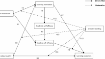 Prior research has explored various factors that promote creativity in engineering students, such as domain knowledge, self-regulated learning, and collaborative environments12,13,14. Recent studies have also shown that AI tools, such as ChatGPT, can facilitate certain aspects of creative work when students use them actively and reflectively15. Yet, little empirical work has examined how competence in using GenAI specifically contributes to creativity in engineering contexts. Moreover, while some studies have highlighted the direct impact of technological competence on creativity16, there is growing recognition that this relationship is likely to be indirect and shaped by important cognitive and psychological processes17,18. Critical thinking is widely acknowledged as an essential cognitive skill for creativity19. It enables students to analyse and question AI-generated content, discern its strengths and limitations, and refine or adapt ideas rather than accept outputs uncritically20. Empirical research suggests that stronger critical thinking enhances students’ capacity to transform information into original and appropriate solutions21. Similarly, AI self-efficacy, students’ belief in their ability to use AI tools effectively, can influence how confidently they experiment with AI and persist through complex, ill-defined tasks, which is vital for sustaining creative engagement22. Existing evidence indicates that students with higher self-efficacy are more likely to use emerging technology proactively and creatively23.