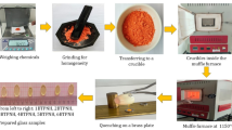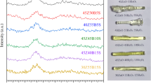 where \({M}_{i}\) is the molar weight, \({x}_{i}\) is the molar fraction, and \({V}_{i}\) is the packing factor parameter of each oxide. The packing factor values for the utilized oxides are extracted from Ref.54. As can be shown in Fig. 6, \({\rho }_{Th}\) values are found to represent a similar trend line to the \({\rho }_{Ex}\) values with comparatively higher values. This behavior may be due to several factors such as: The theoretical density is often calculated assuming a defect-free structure while real glass contains various types of imperfections such as voids, bubbles, and microcracks which decreases the actual density55. Also, the theoretical density calculation assumes an ideal composition based on the average formula. In practice, the composition can vary slightly due to manufacturing processes, leading to deviations in density56. Additionally, real glass can adsorb moisture from the environment or contain impurities that were not accounted for in the theoretical model57. These factors can decrease the actual density compared to the empirical value.