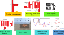 where, RSB represents the relative bandwidth of the stopband, selectivity (ξ), normalized size of the structure (NS), \({a_{\hbox{min} }}\) and \({a_{\hbox{max} }}\)shows 3dB and 20 dB point of attenuation, fs represents 20 dB frequency of stopband, fc displays the frequency of cutoff at 3dB and λg displays wavelength guided at a cut-off of low pass response. The planned lowpass gives a selectivity of 64.1 dB/GHz, RSB 0.61, NS of 0.04 λg × 0.06 λg, and FOM of 23,498. Table 1 summarises comparisons between the designed lowpass-quad passband filter with the related filter circuits. This consists of the frequency of lowpass cut-off fc, bandpass resonating frequencies f0, insertion loss at lowpass region, and passband response. It also comprises the dielectric constant (\(\:{\epsilon\:}_{r}\)) of uthe sed substrate, its loss tangent (\(\:\text{tan}{\updelta\:}\)) and the thickness of substrate hsub. Additionally, it compares circuit electrical size at the cut-off frequency of lowpass. The suggested circuit offers several advantages over the earlier research, including small size, good selectivity, and straightforward circuit design.