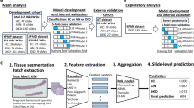 The nuclei segmentation and cell type identification task was performed using TIAToolBox, a suite of libraries and tissue image analytics pipelines3,8,22,23. Briefly, HoVer-Net model trained on PanNuke and HoVer-Net model trained on MoNuSac were used for nuclei segmentation and cell type assignments. The segmented nuclei and assigned cell types from the two models were integrated using cellmerge24 to ensure inclusion of a diverse set of cell types. A total of eight cell types were included in the final merged results that included epithelial cells (neoplastic, non-neoplastic and uncategorized), inflammatory cells (that overlapped between HoVer-Net PanNuke and HoVer-Net MoNuSac), lymphocytes, neutrophils, connective cells, and dead cells. Four Tesla V100 Graphical Processing Unity (GPU) machines were used in parallel to accelerate inference times. Final set of cell and nuclei features (n = 16) included the number of nuclei by each cell type and proportion of each cell type present in the WSI (Supplementary Table 1).