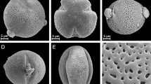 Pollen grains were analysed for five quantitative features, i.e. length of polar axis (P), equatorial diameter (E), thickness of exine (Ex), exactly Exp (thickness of the exine along the polar axis), and P/E, Exp/P ratios, as well as the following qualitative traits: pollen outline and shape and exine ornamentation. The pollen size was determined according to Erdtman’s63 classification based on the length of the polar axis (P). The pollen shape classes (P/E ratio) were adopted according to the classification proposed by Erdtman63: suboblate (0.75–0.88), oblate-spheroidal (0.89–0.99), spheroidal (1.00), prolate-spheroidal (1.01–1.14), subprolate (1.15–1.33), prolate (1.34–2.00) and perprolate (> 2.01).