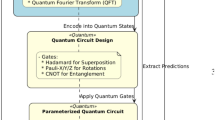 The first step in a QNN involves encoding classical data into quantum states. This is typically done using quantum feature maps19, where classical input data \(\Psi \in \mathbb {C}^{\gamma }, 1\le \gamma \le 2^n\) is encoded into a quantum state \(\Big | \Psi \Big \rangle\), where \(2^n\) is its dimension. This state can be prepared by