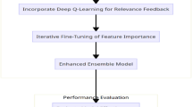 Where \(\:{\theta\:}_{ik}^{t+1}\) and \(\:{\theta\:}_{ik}^{t}\) denote the angles with regard to kth q-bit at iterations (t + 1) and t, respectively. This quantum movement alters the selection probability of the feature solutions \(\:{BF}_{i}\). The search space can be efficiently explored by adhering to the following criteria: the q-bit of \(\:{QF}_{i}\) can be replaced with a new value if the kth q-bit of the \(\:{BF}_{i}\) differs from the \(\:{BF}_{j}\), otherwise, the same value for \(\:{QF}_{i}\) is retained. The replacement of \(\:{QF}_{i}^{t}\) with new solutions \(\:{QF}_{i}^{t+1}\) can be evaluated using Eq. (25) on the basis of movement strategy described in Eq. (24).