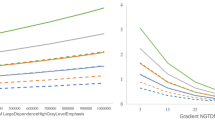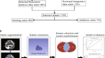 It is important to note that previous research has demonstrated that radiomic features are sensitive to voxel size38. Therefore, maintaining consistent voxel sizes across patients is essential for obtaining accurate and reliable radiomics feature calculations. In this study, CT resolution sizes varied from 0.3 × 0.3 × 0.5 mm to 1.3 × 1.3 × 5 mm. To address this variability, all CT images were resampled to a resolution of 1 × 1 × 1 mm3 using the basis spline algorithm (Bspline) to interpolate the HU values in the resampled voxels. Correspondingly, the nearest neighbor algorithm was employed to resample the masks to the same resolution. Subsequent to this, gray level normalization, a critical step for enhancing the comparability and robustness of radiomics features across different settings and patient variations, was applied. Previous studies have shown that gray level normalization reduces variance and enhances the robustness of radiomic features, particularly with respect to varying discretization levels38. Normalization was achieved by scaling the HU values to a uniform range across patients, specifically by subtracting the mean and dividing the voxel values by the standard deviation. Typically, this process results in a region of interest (ROI) with intensities approximately in the range of [-3, 3] after excluding outliers beyond three standard deviations. These values were then further scaled using a normalized scale parameter, such as a value of 100, resulting in an approximate range of [-100, 100]. Finally, the intensities within the ROI were discretized using a unified bin-width of 5, starting from the minimum normalized HU value of 0. In this study, a bin width of 5 was chosen to ensure an adequate number of bins (between 1 and 400), thereby capturing more granular textural information39. This discretization step assigns a new value to each voxel using the formula \(floor\left(\frac{origin\:intesity}{5}\right)+1.\) This discretization approach offers the advantage of noise suppression and improved robustness of radiomic features.