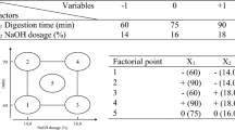 This study applies factorial experimental design on thermo-alkali pretreatment to investigate the impact of temperature and NaOH dosage on pulp properties. The analysis is calculated by Excel (Microsoft, USA) and follows the guidelines outlined in ‘Design and Analysis of Experiments 7/e’ written by Montgomery22.