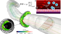 We used SimVascular54, an open-source cardiovascular modeling and simulation software, to construct synthetic LCA models, generate finite element meshes, and solve the incompressible Navier–Stokes equations that govern blood flow. SimVascular includes an advective-stabilized finite element flow solver55 with backflow stabilization56, implicit boundary condition coupling57, and a specialized linear solver58. We employed a tetrahedral mesh with a boundary layer averaging 3 million elements. Mesh parameters were selected based on a mesh-independence study. The time step for each simulation was set to 0.001 s. Transient flow was simulated over four cardiac cycles to reach a converged periodic solution with a < 1% difference in outlet pressure and flow from the previous cycle. The final cardiac cycle was used for data analysis. Simulations were run on high-performance computing hardware, requiring 1000 CPU hours on average.