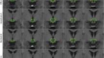 T1-weighted MRI data were pre-processed using the Tensor Imaging and Fiber Tracking (TIFT) software package expanded by a volumetric extension package26. First, the rigid body normalization of T1-weighted MRI data was performed along the anterior commissure (AC) – posterior commissure (PC) axis such that the coronal cutting plane was perpendicular with respect to the AC-PC axis to correct for individual tilt of the head and to minimize potential partial volume effects. Then, spatial upsampling was performed to improve the accuracy in identifying hypothalamic borders. The hypothalamic section of each dataset was pre-selected in 50 slices of 0.5 mm thickness (matrix 512 × 512, resolution 0.125 × 0.125 mm2).