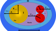 The studied structure is a hybrid DQD-MNP structure. DQDs structure comprises two QDs composed of InAs disk-shaped QDs. These two QDs have \(\:{r}_{d1}\left(=13\:nm\right),\:{h}_{d1}(=2\:\text{n}\text{m})\) as a radius and height of the first QD, while those of the second QD are \(\:{r}_{d2}(=11\:nm)\),\(\:\:{h}_{d2}(=3\:nm)\). The MNP is of a spherical shape of \(\:{r}_{m}(=16\:nm)\) radius. The MNP-DQD distance is denoted by \(\:{R}_{dm}(=6\:\text{n}\text{m})\); see Fig. 1. The strong coupling case between the MNP-DQD hybrid system is applied, i.e., \(\:R<{r}_{m}\)17. The WL is an \(\:{In}_{0.5}{Ga}_{0.5}As\) quantum well of \(\:9\:nm\) thickness.