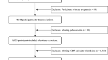 The eGDR was calculated by applying the formula: eGDR = 21.158 − (0.09∗WC) − (3.407∗HT)− (0.551∗HbA1c) [WC = waist circumference (cm), HT = hypertension (yes = 1/no = 0) and HbA1c = HbA1c (%)]. Hypertension was defined as follows: 1)systolic blood pressure ≥ 140 mm Hg and/or diastolic blood pressure ≥ 90 mm Hg; 2) self-reported hypertension;3) taking antihypertensive medication. According to eGDR levels, participants were divided into four groups based on predefined criteria (≤ 4, 4–6, 6–8, > 8 mg/kg/min)20. Additionally, participants were grouped into four quartiles (Q1, Q2, Q3, and Q4) based on their eGDR values for further analysis. Gallstone statistics were taken from the MCQ questionnaire, “Has DR ever said you have gallstones?” to ascertain whether gallstones are present.