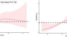Insulin resistance (IR), characterized by reduced sensitivity or responsiveness to insulin metabolism, has been widely recognized as an independent risk factor for mortality among CRM patients3. The triglyceride–glucose index (TyG) has been considered a dependable and surrogate biomarker for reflecting IR7. Current research has established a strong association between the TyG index and mortality in the high-risk populations, such as those with acute myocardial infarction (AMI)8, acute heart failure (AHF)9, and patients in intensive care units10. In addition, previous studies have also shown that a 1-unit increment of the TyG index was associated with a significantly higher risk of adverse cardiac and cerebrovascular events (MACCE) in patients with acute coronary syndromes, with a hazard ratio (HR) of 1.18, and the highest quartile of TyG had a higher MACCE incidence compared to the lowest quartile, with an HR of 1.2911. However, the relationships between the TyG index and mortality in the general community population remain unclear. The prognostic potential of the TyG index is being increasingly explored among populations at moderate to low risk, including those with chronic kidney disease(CKD)12, diabetes (DM)13, and the general population14. This indicates that there is a growing body of researches highlighting the importance of the TyG index, the specific association with mortality in different risk groups, especially within the CRM population, requires further elucidation.