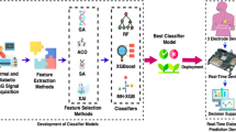 Figure 4 presents violin plots illustrating the FE performance of ABC and ABC-PSO on the PIMA dataset for both diabetic and non-diabetic classes. The width of each violin represents the data point concentration at different values, while its overall shape provides a comprehensive view of the data’s distribution. As shown in Fig. 4a, the ABC-based FE method demonstrates distinct separation between diabetic and non-diabetic classes. The diabetic points are clustered within a narrow range of 0.82 to 0.83 typically it’s a strip line, while the non-diabetic points exhibit a wider distribution, ranging from \(\:-\)0.1 to 1.0. Figure 4b depicts the ABC-PSO method, where the diabetic points range from 0.6 to 1.3, and the non-diabetic points range from \(\:-\)0.1 to 0.7. This indicates a clear distinction between the two classes. The analysis of FE techniques revealed that the data is characterized by non-Gaussian distribution and non-linearity, highlighting its complexity across classes. These findings underscore the importance of further feature selection to enhance classification performance