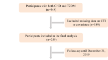 Interview and examination information and laboratory data included in the study were collected from the NHANES website. Socio-demographic covariates contained age, gender, race/ethnicity, education level, marital status, and poverty-to-income ratio (PIR). Race/Ethnicity was classified as Mexican American, other Hispanic, non-Hispanic white, non-Hispanic black, or other races. Education level was divided into three categories: below high school, high school graduate or GED, and some college or above. PIR as an index of family income was classified into ≤ 1.5, 1.5–4.0, and >4.0. Alcohol use status was categorized into never drinking, 1–5 drinks/day, > 5–10 drinks/day, > 10 drinks/day. The smoking status was categorized as never smoking(smoked less than 100 cigarettes in his/her entire life), former smoking (smoked more than 100 cigarettes but quit before the survey), and current smoking (smoked more than 100 cigarettes and not quit during the survey). Examination data encompassed blood pressure, height, weight, waist circumference, and BMI(kg/m2), which can calculated by dividing weight by the square of height. Laboratory data included total cholesterol (TC), triglycerides (TG), low-density lipoprotein cholesterol (LDL-C), high-density lipoprotein cholesterol (HDL-C), HbA1c, fasting blood glucose and insulin, oral glucose tolerance test, serum creatinine, urine albumin, and urine creatinine. The urinary albumin to creatinine ratio(mg/g) was calculated by dividing urine albumin by urine creatinine, and the estimated glomerular filtration rate (eGFR) was calculated by CKD-EPI equations. Questionnaire information involved a medical history of congestive heart failure(CHF), coronary artery disease (CAD), Chronic kidney disease (CKD), cancer, and diabetes. CHF was determined by self-reported positive answer to “Ever told had congestive heart failure?”. CAD was defined by any affirmative answer to “Ever told you had coronary heart disease?”, “Ever told you had angina/angina pectoris?”, or “Ever told you had heart attack?”. And CKD was diagnosed as: (1) eGFR<60 ml/min/1.73m2;(2) urinary albumin to creatinine ratio(UACR) ≥ 30 mg/g; (3) previous diagnosis of CKD(answered “yes” to the question “Ever told you have a weak kidney?”). Diabetes was defined as FBG ≥ 7.0mmol/L, HbA1c ≥ 6.5%, two-hour glucose concentration(OGTT) ≥ 11.1mmol/L, or previous diagnosis of diabetes. Further information on the above index can be accessible at https://www.cdc.gov/nchs/nhanes.