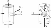 Based on the stress distribution around the open-hole horizontal well, the wall shear of the perforation borehole was subject to the stresses of \(\sigma _{{\theta h}}\) and \(\sigma_{z h}\), in the horizontal direction, and \({\sigma}_{rh}\) was the stress in the axial direction of the perforation borehole. The perforations were usually in the reservoir as boreholes perpendicular to the horizontal well. Considering the additional stresses generated by seepage stresses and temperature differences, the stress field distribution surrounding the perforation borehole was obtained by superimposing the effect of each stress component. This state of stress can be represented by the axial stress \({\sigma}_{zp}\), radial stress \({\sigma}_{rp}\), circumferential stress \({\sigma}_{{\phi p}}\), and shear stresses \({\tau}_{{rp \phi}}\), \({\tau}_{rpz}\), \({\tau}_{\phi zp}\) in the polar coordinate system of the perforation, as shown in Fig. 2. The stress distribution in the surrounding rock around the perforation borehole can be expressed by Eq. (13) considering the combined effect of fracturing fluid pressure in the perforation, geo-stress and the seepage effect of fracturing fluid filtration loss.