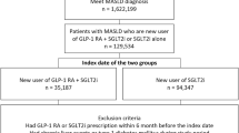 The potential association between GLP-1 agonists and metabolic-associated steatotic liver disease (MASLD) remains an area requiring further exploration. There have been several clinical trials with various GLP-1 agonists investigating cardiovascular outcomes in patients being treated for type 2 diabetes10,11,12,13,14,15,16,17,18,19. A meta-analysis which included eight trials with a total of 60,080 patients found that GLP-1 agonists reduced major adverse cardiovascular events, all-cause mortality and hospital admissions for heart failure in treated patients with type 2 diabetes, regardless of structural homology20. Individually, semaglutide has been found to be noninferior to placebo when examining rates of cardiovascular death, nonfatal myocardial infarction, or nonfatal stroke in patients with type 2 diabetes at high cardiovascular risk18,19. Another randomized clinical trial is ongoing to assess cardiovascular outcomes in patients with previously established atherosclerotic cardiovascular disease and/or chronic kidney disease treated with oral semaglutide21. Despite these findings, to our knowledge, there are no large population-based studies that have investigated the incidence of new-onset major cardiovascular events or clinically significant portal hypertension events in patients with MASLD who are receiving treatment with GLP-1 agonists for any indication. Therefore, we investigated the association of GLP-1 agonists with major cardiovascular events, clinically significant portal hypertension events, and all-cause mortality in patients with MASLD at a population level.