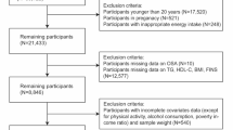 The participants’ alcohol consumption status was categorized into five groups: never (fewer than 12 drinks in a lifetime), former (12 or more drinks in a lifetime but none in the previous year), mild (1 + drinks/day for women, 2 + drinks/day for men), moderate (2 + drinks/day for women, 3 + drinks/day for men), and heavy (5 + drinks/day for women, 4 + drinks/day for men). This categorization was based on the number of alcoholic beverages consumed per day, with the following thresholds applied: ≥ 2 drinks/day for women and ≥ 3 drinks/day for men, binge drinking ≥ 2 days/month, and heavy drinking (≥ 3 drinks/day for women and ≥ 4 drinks/day for men, or binge drinking ≥ 5 days/month). The participants were divided into three smoking categories: never smokers (smoked fewer than 100 cigarettes), former smokers (smoked at least 100 cigarettes but not currently smoking), and current smokers (smoked at least 100 cigarettes and currently smoking daily or some days). The definition of metabolic syndrome (MetS) was in accordance with the updated National Cholesterol Education Program/Adult Treatment Panel III criteria for Americans22. A history of physician-diagnosed hypertension, a measured average systolic blood pressure of at least 140 mmHg, a measured average diastolic blood pressure of at least 90 mmHg, or a history of antihypertensive medication use were all considered indicators of hypertension23. A self-reported diagnosis of diabetes, a fasting plasma glucose level ≥ 7.0 mmol/L, glycosylated hemoglobin (HbA1c) ≥ 6.5%, and/or the usage of anti-diabetic medication were all considered indicators of diabetes24.