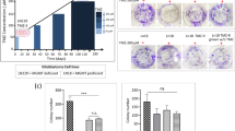 Glioma cells were processed for protein extraction using RIPA lysis buffer (Beyotime, Cat. No. P0013B), and the protein concentration was determined via bicinchoninic acid (BCA) method (Beyotime, Cat. # P0010). Equal amounts of lysates from each sample were separately loaded onto SDS-PAGE. Subsequent to electrophoresis, the proteins in the gel were transferred to a polyvinylidene difluoride (PVDF) membrane with a 0.2 μm pore size (Thermo Scientific, Cat. No. # 88520). Following the transfer, the PVDF membrane underwent blocking in a 5% Bovine Serum Albumin (BSA) solution for 60 min. Subsequently, in accordance with the primary antibodies’ protocol, the primary antibodies were diluted in 5% BSA solution, and the PVDF membranes were fully incubated at 4 °C overnight. On the following day, the membranes were rinsed three times with TBST solution before undergoing the staining process with the secondary antibody. After a two-hour incubation with the secondary antibody at suitable concentration, protein bands were visualized using an enhanced chemiluminescence kit (ECL, ThermoFisher, Cat. No. #32106), and the quantification of protein expression was carried out using Image J software.