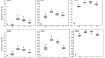Graphs and statistical analyses were conducted using R software (version 3.2.5). Depending on the experimental design, one-way or two-way analysis of variance (ANOVA) was applied to evaluate the significance of comparisons. Tukey’s Honestly Significant Difference (HSD) test was used for pairwise comparisons to test significant main effects or interactions. A p-value of ≤ 0.05 was considered statistically significant.
