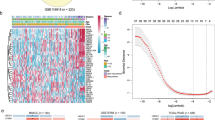 For the construction of a prognostic model in prostate cancer, common differentially expressed genes from both datasets underwent univariate Cox regression analysis, leading to the discovery of 67 genes linked to prognosis. Subsequently, Lasso regression analysis was performed, which revealed that the optimal model comprised seven genes: KIF4A, UBE2C, FAM72D, LIX1, CCDC78, HOXD9, and SLC5A8 (Fig.Ā 3a,b). Further refinement of the model was achieved through multivariate Cox regression analysis, providing regression coefficients for each gene and a constant term. Utilizing these coefficients, a risk prognostic model was developed, integrating gene expression values (Fig.Ā 3c). The corresponding regression coefficients β1āβ7 are 0.486295137,āā ā0.084724889, 0.20856452,āā ā0.480372962, 0.177600963, 0.608003224, and ā 0.250531262, with a constant term of ā 2.421738301. According to the risk assessment model scoring formula, the prostate cancer prognostic model Risk Score is calculated as ā 2.421738301ā+ā0.486295137EXP(KIF4A) ā 0.084724889EXP(UBE2C)ā+ā0.20856452EXP(FAM72D) ā 0.480372962EXP(LIX1)ā+ā0.177600963EXP(CCDC78)ā+ā0.608003224EXP(HOXD9) ā 0.250531262*EXP(SLC5A8), where EXP(gene) represents the gene expression value.