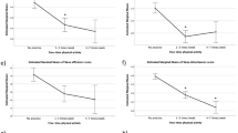 Table 4 presents the results of the partial correlation analysis, showing the association between SJL and continuous outcome variables (lifestyle behaviors, clinical outcomes, sleep beliefs, and academic performance), controlling for demographic and actigraphy covariates. Similarly, Table 5 shows the comparisons of SJL measurements among groups of categorical variables derived from questionnaires, controlling for clinical covariates. Of note, SJL was significantly associated with the global DBAS (ρ = − 0.1877, p-value = 0.0253) and the TUQ total (ρ = − 0.1898, p-value = 0.0208) scores, whose scatter plots are displayed in Fig. 3. Conversely, there were no statistically significant correlations between SJL and other variables assessed (all p-values > 0.05). For the sake of completeness of the analysis, supplementary material also includes an assessment of the influence of earlier sleep midpoint on weekends in the SJL (SJLADMW, section 5). As in the case of SJL, SJLADMW (see Supplemental Table 8 and Supplemental Table 9) were also significantly associated with DBAS. Conversely, it was not significantly associated with TUQ and the remaining outcomes variables, which supports the use of SJL.