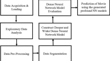 After the pre-processing of the texts, the content features of the subtitles are described through the TF-IDF approach. Thus, a unique list of all stem words in the database texts is formed as \({\text{U}} = \left\{ {{\text{u}}_{1} , \ldots ,{\text{u}}_{{\text{n}}} } \right\}\). Then the number of repetitions of each word U in each subtitle is counted. \({\text{TF}}\left( {\text{d}} \right) = \left\{ {{\text{t}}_{{{\text{d}},1}} , \ldots ,{\text{t}}_{{{\text{d}},{\text{n}}}} } \right\}\) is the resulting vector for each text like d. Next, the frequency of each word U in all the database subtitles is counted to obtain a set like \({\text{IDF}} = \left\{ {{\text{f}}_{1} , \ldots ,{\text{f}}_{{\text{n}}} } \right\}\). The i-th element in the sets TF(d) and IDF shows the frequency of the root word ui in the sample d and all samples, respectively. The TF-IDF vector, which describes the importance of each concept in the film text, is obtained by combining these values. The proposed method uses the logarithmic combination of these two sets to reflect the content features more accurately. Therefore, in the end, the weight of each word such as ui for the subtitle d in the TF-IDF vector is calculated according to Eq. (2)30: