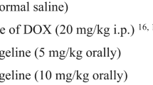 Hepatotoxicity has been observed in rats after receiving 3 mg/kg/week of DOXO injections over five weeks29. Additionally, male Sprague–Dawley rats demonstrated signs of hepatotoxicity after seven weeks of receiving a cumulative dosage of 14 mg/kg DOXO30. Furthermore, a pilot study was carried out to verify the induction of DOXO-induced hepatotoxicity using the selected procedure in our study. According to the findings of the pilot study and Trivedi et al. (2011) research, hepatotoxicity was induced by five i.p. injections of DOXO (Ebewe Pharma Co., Cat. No. A4866) over five weeks at 4 mg/kg/week28. Moreover, all weekly injections were conducted simultaneously on Fridays at a specific time of day. The vehicle group received 0.9% saline in the same volume and procedure as the Dox group.