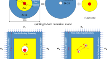 In smooth blasting and pre-fracture blasting, the use of uncoupled charging methods in boreholes has become widespread across various construction sites. Scholars generally agree that in uncoupled charge blasting, the explosive’s impact initially compresses the air in the gap between the borehole and the explosive charge. This air acts as a buffer, reducing the direct impact on the borehole wall before the shock wave refracts into the surrounding rock, forming a shock wave around the borehole44. Compared to coupled charging, uncoupled charging reduces the peak shock wave, thereby lessening the damage to the rock at the borehole wall. Additionally, the presence of air, which compresses and expands, prolongs the detonation’s action time, effectively enhancing the utilization of the explosive’s energy.