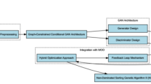 The established mathematical model of MOTO is used for data generation. To ensure numerical stability, the density filtering method with a filtering radius of 1.5 is applied31. Benchmark DDs are selected for validation, including the rectangular beam (2:1 aspect ratio) and the L-bracket with the top-right quadrant removed, both widely recognized in TO studies16. Three common BCs were considered: cantilever beams, simply supported beams, and MBB-beams47. For the L-bracket DD, the cantilever BC is applied to constrain its top nodes. The length of the DD (referred to as nelx) was ranged from 60 to 80. To mitigate stress concentration, the load is evenly distributed on two adjacent nodes (i.e., 1.0 N per node), and the \(3\,\times \,2\) elements near the loading points are defined as solid elements, and their density remains unchanged throughout the optimization process48. Detailed configurations of DDs, BCs, and loading conditions are illustrated in the top-left panel of Figure 5. The \(V_f\) ranged from 0.3 to 0.6, and the \(S_f\) ranged from 0.0 to 1.0. Parameters of nelx, nely, \(V_f\), \(S_f\), as well as the loading nodes are all determined using Latin Hypercube Uniform Sampling method49. This diverse set of initial BCs, along with the sampling method that covers various design cases, ensures the comprehensiveness and representativeness of the generated samples. Therefore, the model is able to learn a broader range of knowledge, thereby significantly improving its generalization capability and enhancing its performance across different tasks. As \(V_f\) and \(S_f\) change, the resulting topologies exhibit distinct material distributions, as shown in the top-right of Figure 5.