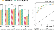 We calculated the approximate entropy vector \(ApEn=\left[ {ApE{n_1},ApE{n_2}, \ldots ApE{n_{18}}} \right]\), the sample entropy vector \(SaEn=\left[ {SaE{n_1},SaE{n_2}, \ldots SaE{n_{18}}} \right]\) and the fuzzy entropy vector \(FuEn=\left[ {FuE{n_1},FuE{n_2}, \ldots FuE{n_{18}}} \right]\) of 18 channels for each segment. Then, the 18-dimensional ApEn feature vector and and the 18-dimensional FuEn feature vector were concatenated to obtain the 36-dimensional fusion feature vector as: