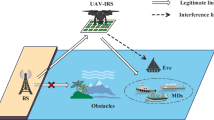 where \(\theta _{ru}[n]\) is the departure angle of the transmission link from the IRS to the UAV, \(\cos \theta _{ru}[n]=(x_r-x_u[n])/{\text {D}_{ru}[n]}.\) According to the current state of research in channel estimation techniques40,41,42, the channel state information (CSI) for IRS-assisted communication systems can be obtained.