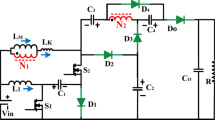 In16,17, a diode-capacitor cell and two coupled inductors have been used to increase the output voltage gain. Also, in order to have soft switching conditions, the snubber capacitor is placed parallel to the main power switches. A large number of switches and the presence of a snubber capacitor and two coupled inductors increase the size of the structure of these converters. The DC–DC converter suggested in18 is based on the conventional boost converter. A switched capacitor cell has been used to increase its voltage gain in this structure; however, it has a low voltage gain. One of the methods to improve the efficiency is the quasi-resonant operation, which is utilized by the converters presented in19,20. Also, two passive clamp circuits are used in their structure. In21,22,23,24, the voltage lift technique was utilized to increase voltage gain. In this technique, energy storage elements such as capacitors and inductors are implemented in order to increase the output voltage gain and overcome the parasitic effects of the components. In25,26,27, the input source and the output terminal do not have a common ground. This method makes these converters unsuitable for PV applications. In some converters, a three-coil coupled inductor has been used to increase the output voltage gain, which has a sizeable magnetic core27,28,29. In the interleaved DC–DC converter presented in29, two pairs of three-coil inductors and a voltage multiplier cell are utilized to increase the output voltage gain in a cascade structure. Despite the hard switching conditions, the large number of semiconductor elements in this converter has caused an increase in losses and, as a result, a decrease in the converter efficiency.