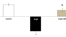 To develop an aging model in the current work, systemic administration of D-galactose was applied6,13. Accelerated aging using D-galactose mimics the natural aging process by increasing the production of advanced glycated end products, leading to activation of nuclear factor kappa-light-chain-enhancer of activated B cells (NF-κB), increasing reactive oxygen species (ROS) generation, mitochondrial breakdown, and apoptosis14,15.