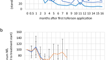 Meyer, T. et al. Neurofilament light-chain response during therapy with antisense oligonucleotide tofersen in SOD1-related ALS: Treatment experience in clinical practice. Muscle Nerve 67, 515–521 (2023).