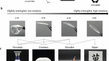 Low-acyl cold adhesive is a polymer material, also known as low-temperature cold adhesive or hot melt adhesive. It exhibits a solid form at room temperature, and it can be turned into a homogeneous liquid state when heated to a certain temperature. Cooling hot solutions can produce transparent, hard and brittle gels at a low polymer concentration. The involved gelation mechanism is a coil-helix transition followed by lateral helical aggregation12. This remarkable gelling capacity allows the wide use of low-acyl gellan gum (GG) in the food industry as thickening, gelling and structuring agent13,14. Besides, low-acyl GG has outstanding advantages in flexibility, biocompatibility, degradability and acid stability15. At present, gelling gum has been widely used, such as food16, medical17, wastewater treatment18, flexible electronics19 etc. It can be spontaneously gelated at room temperature, which is thermally reversible20. However, using single type of gellan gum may present limitations, such as poor mechanical properties, high gelling temperature, and instability in physiological conditions, which cannot meet the requirements of wide or special applications. Previous results have shown that, gellan gum can transform into harder (rigid) with greater thermal stability and optimal gelling conditions15,21,22,23. Cations can unite with carboxyl groups in the molecular chain to enhance the force between molecular chains and thus improve the strength of the gel.