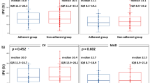 Several reasons may explain these findings. As mentioned above, both groups began with a CoV associated with good medication adherence14, and it may be difficult to improve something, that is already highly satisfactory. This phenomenon might be due to a selection bias with adherent patients being more likely to participate in such trials than those who are more challenging and less adherent. In our previous retrospective census, the CoV was 20 ± 10%14. In the present trial, both groups started with an even better CoV which might indicate above-average motivation to comply. The prolonged recruiting time with comparably large numbers of patients unwilling to participate would support this theory.