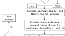 Various predictive frameworks for hydrate formation equilibrium have been developed based on thermodynamic-based models. Among statistical thermodynamic approaches, the van der Waals-Platteeuw (vdW-P) model is widely used for this purpose. Although this model is capable of accurately estimating the hydrate formation condition and give valuable insight about the equilibrium, it requires a complicated process to determine the Langmuir adsorption constants52,53,54,55,56. Additionally, previous studies have shown some errors for this model at high pressures and high salt concentrations57,58,59,60,61. A comprehensive review on the limitations of vdW-P model has been presented by Medeiros et al.55. The well-known equations of state are also utilized for describing the hydrate equilibrium condition. However, these methods are also associated with some complexities, especially in the calculation of intermolecular interaction factors62,63. While empirical correlations have shown some success in modeling clathrate hydrate equilibrium, they should not be considered general modeling approaches due to their limited application to particular operating conditions.